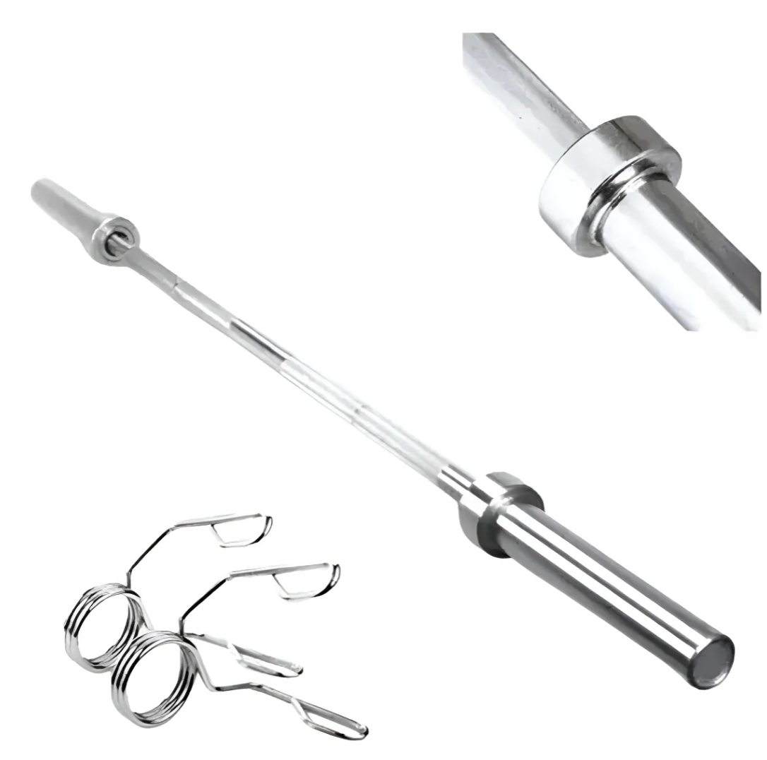 Barra Olímpica Recta - Cromada y estriada. - Material: Acero Inoxidable - Medida: 120cm - La barra tiene 2 ganchos (para fijar las pesas). - Barra 6kg Esta barra olímpica es ideal para quienes buscan mejorar su rendimiento en el entrenamiento de fuerza. Con un peso de 6 kg, es perfecta para principiantes y para aquellos que desean realizar ejercicios de levantamiento de pesas con un equipo de calidad. Su diseño incluye topes para barra, asegurando que las pesas se mantengan en su lugar durante el ejercicio. Con un largo de 1.2 m, es adecuada para una variedad de rutinas. Además, su construcción en acero inoxidable garantiza durabilidad y resistencia al desgaste, convirtiéndola en una excelente adición a tu equipo de gimnasio. NOTA: NO INCLUYE DISCOS.