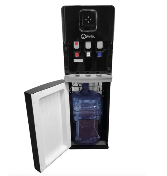 Dispensador con Bidón en la parte inferior, fácil instalación y practico para el hogar/oficina. Botones de encendido y apagado Compartimiento bidón oculto Elaborado con material plástico de alta calidad