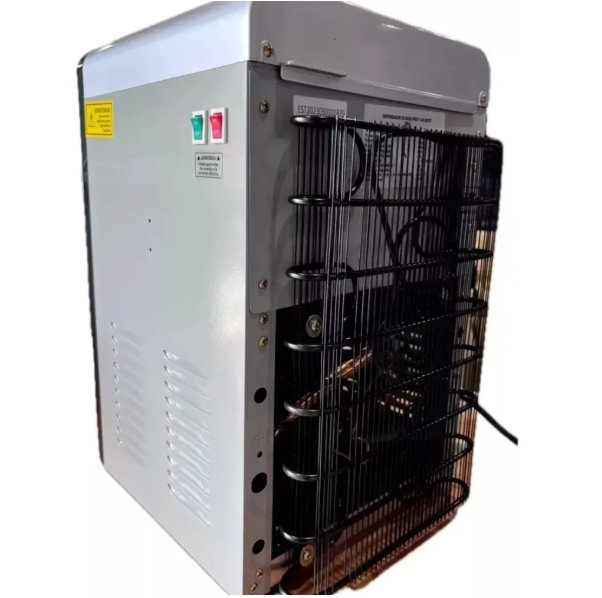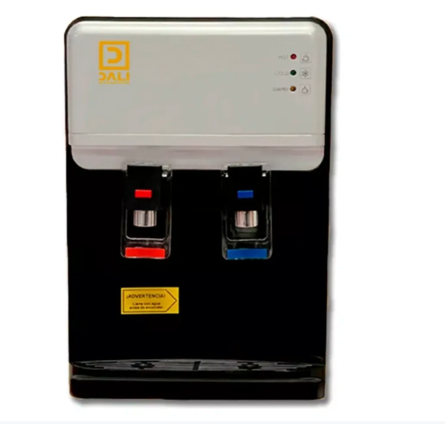 Dispensador de agua de sobremesa de alta gama ¡Ideal para tu hogar! Seguro para niños: Para obtener agua caliente, deberás presionar el botón y luego accionar la manilla. Especial para hogares on niños pequeños Alto rendimiento: Sistema de enfriamiento de compresor, similar al que utilizan los refrigeradores (~5-10ºC). Proporciona también, agua caliente a ~85-90º C, ideal para la preparación de bebidas calientes. Eficiencia energética: El dispensador sólo se activa cuando las temperaturas del agua en sus estanques bajan o suben en relación a los mínimos o máximos indicados. 2 modos de obtención de agua: Fría y caliente (Si deseas agua a tº natural, sólo debes apagar los interruptores frio o caliente en la parte posterior del producto) Dispensador de agua con certificado SEC, según normativa vigente.
