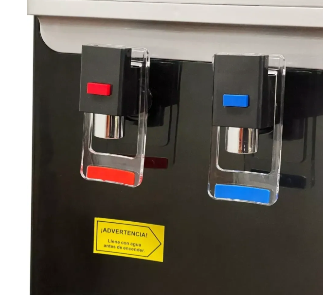 Dispensador de agua pedestal eléctrico, en color negro mate, que seguro se verá increíble en tu hogar u oficina. Seguro para niños: Para obtener agua caliente, deberás presionar el botón y luego accionar la manilla. Especial para hogares con niños pequeños. Elegante y versátil, es un producto robusto y fabricado con materiales de alta calidad. Sistema de enfriamiento de ventilador, entregando agua fresca a temperaturas cercanas a los ~10-15ºC. Proporciona también, agua caliente a ~85-90º C, ideal para la preparación de bebidas calientes. Eficiencia energética: El dispensador sólo se activa cuando las temperaturas del agua en sus estanques bajan o suben en relación a los mínimos o máximos indicados. Este dispensador de agua, depende de la temperatura de su entorno para un máximo rendimiento. Se recomienda que sea instalado en espacios con temperaturas máximas de 30ºC. -Posee compuerta para que puedas guardar lo que desees, ten en cuenta que NO posee Frigobar, por lo tanto no tiene capacidad de enfriamiento en la compuerta 2 modos de obtención de agua: Fría y caliente (Si deseas agua a tº natural, sólo debes apagar los interruptores frio o caliente en la parte posterior del producto)