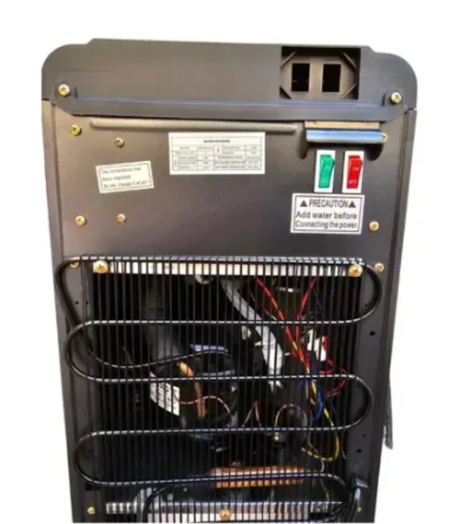 Agua Fría, Caliente y Temperatura Normal (3 llaves). Sistema de enfriado por Compresor. Color Negro. Sin compartimiento Inferior Con Seguro para Niños. Interruptores de encendido y apagado en parte posterior. Capacidad de calentamiento 90-95 °C Capacidad de enfriamiento 5-10 °C Capacidad receptáculo agua fría: 2500 cc Capacidad receptáculo agua caliente: 1000 cc Medidas: 30cm x 86 x 30 cm Peso 9 kg Para bidones de 10, 12 y 20 litros. Consumo de Energía 550W Bidón en la parte superior