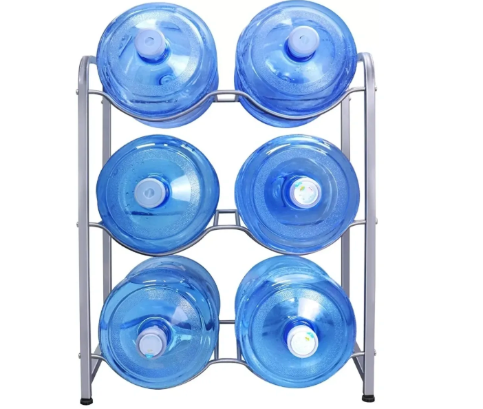 Estante para bidones de agua de 20L, diseño practico y portable, fácil de armar, con capacidad para 6 botellones.