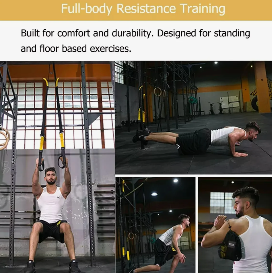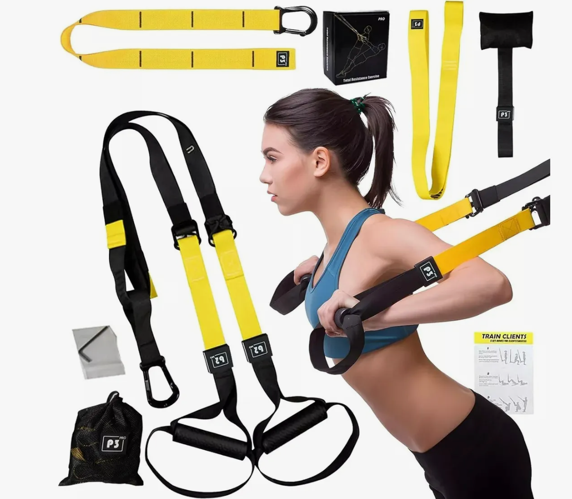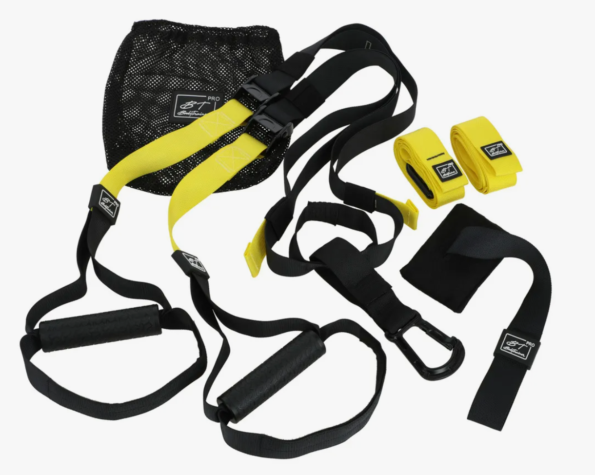 El Set Bandas de Suspensión TRX PRO de BodyTrainer es una combinación de accesorios TRX que incluye una cinta de nylon de alta resistencia con costuras reforzadas de seguridad, ajustable en altura mediante hebillas metálicas. Cuenta con empuñaduras y soportes para pies en los extremos, capaces de soportar hasta 180 Kg. Este equipo ligero, de menos de 1kg, facilita el entrenamiento en diferentes lugares. Utiliza el peso del cuerpo para ejercitar la musculatura de manera integral.